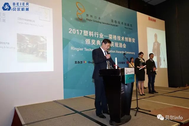江蘇貝爾機(jī)械6000KG/H PET清洗回收生產(chǎn)線榮獲 2017榮格技術(shù)創(chuàng)新獎。榮格工業(yè)傳媒總裁馬國熙先生致辭時提到的:"今年所有的獲獎產(chǎn)品都是實(shí)至名歸,有些技術(shù)成功填補(bǔ)了國內(nèi)市場的空白;有些技術(shù)極大優(yōu)化了傳統(tǒng)加工工藝技術(shù),從而表現(xiàn)得更加節(jié)能和高效;還有些技術(shù)在高性能和環(huán)保方面有杰出表現(xiàn)……所有的獲獎產(chǎn)品都是優(yōu)中選優(yōu),而且今年的報名產(chǎn)品尤為注重在具體應(yīng)用領(lǐng)域的創(chuàng)新"。