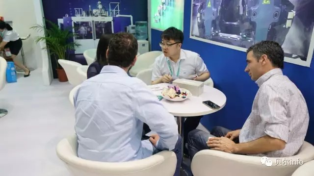 原來是展會(huì)上的展機(jī)正在試機(jī),公司為了更好的讓客戶了解我們的產(chǎn)品,特地安排了展機(jī)的試機(jī)。此次演示的高速吹瓶機(jī)B20D-750, 2+2 雙工位,得到了客戶的高度關(guān)注,來自世界各國的客戶對(duì)星貝爾的技術(shù)實(shí)力給予了高度評(píng)價(jià)。