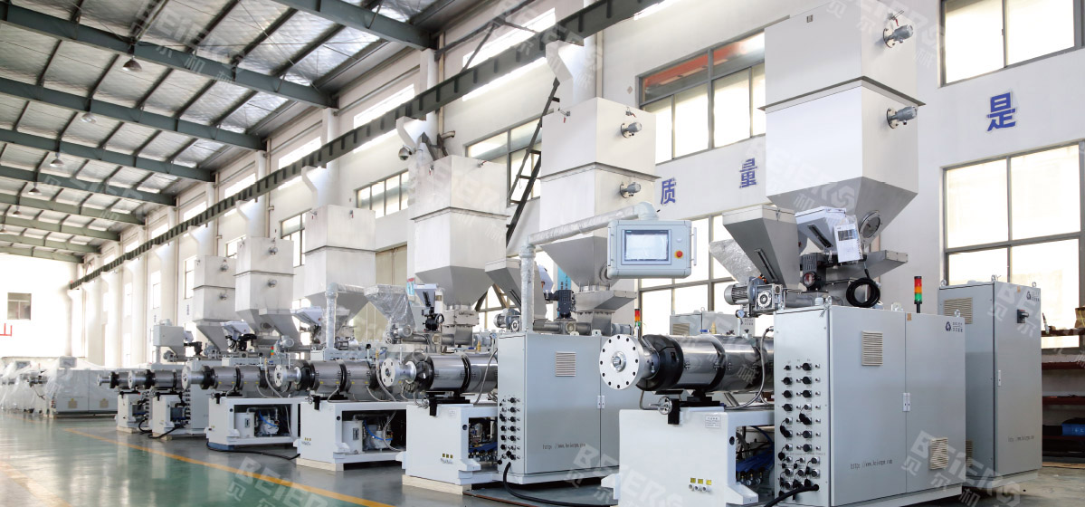 該機組由錐形雙螺桿擠出機, 模具, 真空定型臺, 牽引機, 切割機, 翻料架等組成。